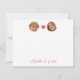 This romantic note card features a love heart illustration in the middle, and on each side of the heart, there’s a round photo of the couple.