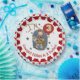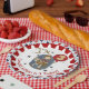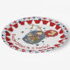 Cowgirl 3rd Birthday paper plates features a little cowgirl dressed in a cow print vest and cowboy hat and boots, a hobby horse, stars, red balloon, text that reads I'm 3, red and blue stars border, and an area you can customise with a name and age, thank you message, or anything you want it to read!