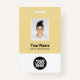 Easily personalise this Custom Employee Name Badge with Photo, Scan Bar Code and business logo. A simple business design in light yellow butter cream and white colours fully customisable in front and back sizes, sans-serif basic and modern fonts and a professional and clear look. Avaiable with lanyard, metal clip or with retractable. No minimum order.