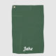 Elevate your game with this Custom Create-Your-Own Golf Towel featuring a classic forest green background and white monogrammed text. Personalize it with your initials or name for a professional, country-club look that stands out on the course. Made from soft, absorbent material, it’s perfect for keeping clubs, balls, and hands clean. This personalized golf towel combines style and function — an ideal gift for golfers, tournaments, or Father’s Day.
