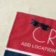 Nautical red, white and blue anchor sailing knot design, easy to personalise with location or your boat's name and also custom name of crew members.