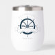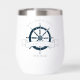 Chic custom cruise wine tumbler for an ocean liner that travels to the coast. This nautical themed design features a navy blue steering wheel to commemorate your summer trip. Personalise with your last name and year for a boat captain on the sea.