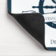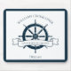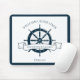 Chic custom summer vacation mouse pad for a beach cruise line on the ocean featuring a navy blue boat steering wheel. This nautical themed design is perfect for a sailor or ship captain on the seaside. Personalize with your own text.