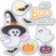 Custom-Cut Vinyl Baby Shower Sticker for Little Boo Halloween featuring cute pumpkins, ghost and bats.