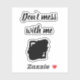 A striking, die-cut sticker featuring the phrase "Don't mess with me." The elegant font and black brushstroke create a bold look that's perfect for laptops, phones, notebooks, and anything else you want to add a touch of power. Durable and water-resistant, this sticker is also scratch-resistant.