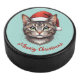 Custom Cute Christmas Cat with Santa Hat Hockey Puck