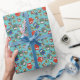 Giftwrap with a pattern of cute owls in red, blue, green on a Turquoise background which you can easily change by using the edit button. The owl pattern is from an original handpainted paper collage design by Judy Adamson.