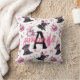 This custom pink and black Halloween throw pillow with a monogram features a cute pattern of pink ghosts, black dogs in witch hats, flying bats, stars, bows, pumpkins, and moons. Add a name and initial to make it your own. The soft colour palette adds a girly twist to spooky season, perfect for Halloween party decor, haunted nursery accents, or any cosy fall corner. Ideal for dog moms, kids’ rooms, or kawaii lovers.