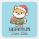 Delightful stickers perfect for the dog lover who enjoys a bit of baking fun. These adorable stickers feature a charming illustrations of a Shiba Inu dressed as a baker, complete with a santa hat and a decorated gingerbread house. With customizable text options, you can add your name or a special message, making these stickers uniquely yours. Perfect for putting on homemade baking creations, treat bags, and gifts.