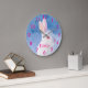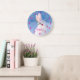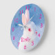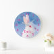 Animal print. Face and head close-up of a cute rabbit with red eyes and white fur. Blue backdrop colour (the rabbit is out in snow) Customise and add the girls name, pink coloured letters and clock numbers.