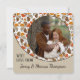 Unique, classy, trendy, pretty and decorative Thanksgiving holiday card. Cute WITH LOVE FROM text and room to customise or personalise with a photo and names (or family name) of your choice. With classic warm autumn orange, red and brown botanical leaves pattern background design. And a customisable thoughtful fall season greeting poem on the backside of the card.