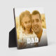 This photo plaque features a customizable photo of you and your child. Below is bold white lettering that says 'Dad', which you can swap out for a different (short) term or name, followed by the established line, where you can add the year you became a father. All colors and elements can be edited in the Zazzle design tool. ••• For more Father's Day gifts, visit my store Zazzle.com/Yeah_The_Boys ••• For custom orders, message me on Zazzle