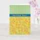 A pretty Get Well Greeting Card to personalise, with a pattern of golden daffodils, from a handpainted watercolour design by Judy Adamson, teamed with a coordinating green check gingham pattern.