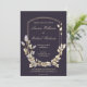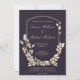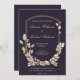 Custom Dark Blue Gold Flower Shield Wedding Invitation