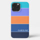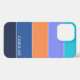 Contemporary classic dark azure blue, salmon orange, violet purple, and aqua turquoise green coloured block stripes pattern design. With room to customise with the name of your choice. Beautiful, modern, and cool cover for the trend-savvy and art-loving hip trendsetter, artsy motif lover who wants to protect their phone from dust and dirt, wear and tear. This design is available in Apple iPhone 6, 7, and 8 Plus, 10 or X, XR, XS, 11, 12, 13 Mini, 14, 15 Plus, and Pro Max cellphone cases. Show off your style, look fashionable trendy, and feel stylish with a unique design on a mobile device accessory of your choice.