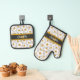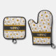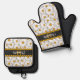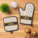 Custom Dark Grey Black White Yellow Daisy Pattern Oven Mitt & Pot Holder Set
