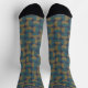 Custom Dark Navy Blue Green Geometric Pattern Socks