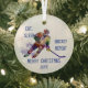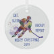 Custom Dated Christmas Eat Sleep Hockey Repeat Fun Glass Tree Decoration