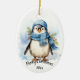 Custom Dated Cute Winter Penguin Bird Christmas Ceramic Tree Decoration