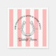 Personalised cabana stripe paper napkins for a winning finishing touch to your elegant derby party! Featuring a classic horseshoe design and preppy pink stripes, these napkins add a charming accent to your party. The design features a central horseshoe graphic, elegant typography, and pink and white stripes, creating a sophisticated and festive look. Customise them with your event name, date, location or a special message. Available as cocktail napkins and dinner napkins.