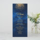 This elegant modern wedding menu has a splash of gold confetti on a blue universe background with stars.  You can add your menu details by clicking on the customise link.  This is part of a gorgeous wedding suite with matching table number cards, place cards and many more items.