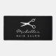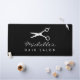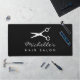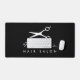 Custom desk mat for hair salon or barber shop. Personalise with your own business name and scissors logo. Black or custom colour. Modern template design.