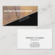 This business card front features a close-up photograph of stained cedar wood. The photograph fills the left segment of the card and is set diagonally against a pure black background. The two elements are separated by a white line. All text on the front is white and black on the back. Click the customise option to select a background colour on the back other than white. This wood photograph front business card design may work well for wood restoration, carpenter, construction jobs or maybe your business.