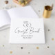 This custom wedding guest book features calligraphy and a diamond wedding rings graphic, along with the bride and grooms names and wedding date on the bottom. You can also add the bride and grooms initials to the back side, remove or change to text of your choice.