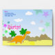 Custom Dinosaur Party Envelopes. Send your dinosaur party invites or birthday invitations in this cool envelope with a happy orange Diplodocus cartoon dino in a stone age landscape with trees, mountains, vulcanos and stars. This dinosaurs party envelope is fully customisable. Personalise with your name and personal back flap message to make your unique party invite envelope very special! Add your text(s) and images. A great dinosaurs envelope for your next dinosaur party or birthday greetings card! Unique party envelopes for the little big dinosaur fans!