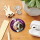 On the back, you can put your phone number or any other custom text. Customise this keychain with your dog's favourite photo (for best results, use a transparent image) and name. You can change the background, font, text colour whatever the design tool allows.