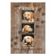 In Memory of your dog, cat, or any pet with paws. Designed with a rustic wood look and brown paw prints. Pay tribute to a loved pet with this personalised memorial gift keepsake or offer your condolences with a personalised sympathy gift from Healing Tears to honour a special dog in your life or a friend's dog that they will cherish. Add your photo images and change the text (Name and dates) to your own. This design features 3 placeholders to add your dog photograph.