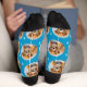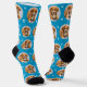 Show your love for your puppy dog or cat with these fun and cosy custom-printed socks! Our premium crew socks feature a pattern of your favourite pet photo along with small white paw prints. Create your own by simply adding your picture to the round placeholder image. Makes a great gift idea and stocking stuffer! Photo tip: crop your photo to a square shape prior to upload so it is centred within the round space. The blue background colour can be modified.