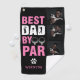 Best Dad By Par ... Two of your favourite things , golf and your dog! Now you can take your best friend with you as you play 18 holes. Surprise a Dog Dad and Golf Lover with these super cute dog 4 photo collage custom golf towels. Customise these golf towels with your dogs favourite photos and simply change the name. Great gift to golf and dog lovers, from the dog! Colours can be customised to suit your taste.