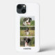A simple, minimal and modern dog photo collage iPhone 13 case featuring three photos of your dog with their name in a modern font. Simple to customise by adding three of your own photos and your dog's name, the background and text colour can also be changed if preferred. Perfect as a gift for Birthday, Christmas, or just because.