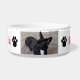 Cute custom dog bowl (or cat bowl)! Personalise with your pet's photo and name in pink. Adorable paw prints on the sides of the photo. Perfect for your fur baby!