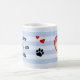 Upload a photo to personalise this blue stripes mug for your dog - one with the pet's face in the middle works best, or you can click on the "Customise" button to adjust it. Then edit the text in the template boxes as required, to add a name or date or other text. Celebrate your dog while he is alive; remember him with love after he has passed away. "Dogs leave paw prints on our hearts".