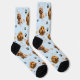These personalized dog photo Valentine socks feature your pet’s photo in a charming blue design filled with hearts and paw prints — the perfect balance of cute, fun, and meaningful.