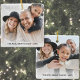 White Gradient Photo Collage Christmas Ornament. This ornament features a full-image layout on both sides, giving you space to showcase two of your favorite photos. A soft white gradient sits at the bottom of each side, adding just enough contrast to help your text stand out clearly while keeping the overall look clean and subtle. Centered along the bottom, your custom wording appears in a simple black serif font for a classic touch. A thoughtful and modern keepsake for family, friends, or yourself during the holiday season.