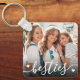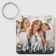 Create a custom keepsake with this personalised family or kids photo keychain, now featuring a sweet new design on the front. The layout includes space for one favourite photo with the word "besties" written across the bottom in a flowing script font, accented by a few small heart details. A subtle black gradient sits behind the text to help it stand out without overpowering the image.