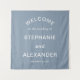 Custom Dusty Blue White Text Welcome to Wedding Tapestry