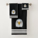 Three stripes on black and custom blrd eagle image. Elegant modern towel set.