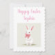 Customise with recipient’s name. A white Easter Bunny with a cute pink bow on a folded card. Great for kids and girly styles.