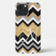 Contemporary white, black, and faux shiny gold glitter chevron zig zag stripes pattern. With room to customise or personalise with a monogram or initial of your choice. Beautiful, modern, and cool cover for the trend-savvy and art-loving hip trendsetter, artsy motif lover who wants to protect their phone from dust and dirt, wear and tear. This design is available in Apple iPhone 6, 7, 8, 10 or X, XR, XS, 11, 12, 13 Mini, 14, 15 Plus, and Pro Max cellphone cases. Show off your style, look fashionable trendy, and feel stylish with a unique design on a mobile device accessory of your choice.