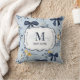 Custom Elegant Blue Bow Floral Monogram Cushion