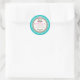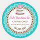 © 2022 Socialite Designs Inc. Elegant cake bakery box sticker with a beautiful lace border and striped background.