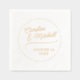 Immortalise every tender sentiment with our exclusive, chic bride and groom name gold foil napkins. These napkins are the quintessential accent for your table setting on your momentous occasion, adorned with graceful gold foil details, and personalised with your names and the date of your special event. Made from superior quality materials, in an elegant silver, yellow, or rose gold font, against a stylish white. Perfect for weddings, anniversaries, or any heartfelt celebration, they bring an element of elegance and allure. Cherish your moments in grandeur — place your order today!