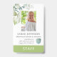 Elegant employee photo ID badge with delicate watercolor greenery design. Personalise this ID template with employee photo and text details you like. Ability to add your logo or if you prefer ID without it, simply click on blue button in template to access our editor screen where you can delete our logo image. Coordinating business cards and stationery paper also available.