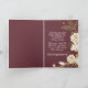 Unique, classic, trendy and decorative Holiday card, with Christmas Joy Is here Today text quote in a stylish faux gold calligraphy font. With room to customize or personalize with a photo and family name (or individual names) of your choice on an elegant burgundy mauve red background. And a customizable season greeting message on the inside of the card.