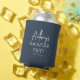 Minimalist modern bachelor party can coolers with easy customisation in a elegant trendy script typography design. This is the dusty dark blue version.