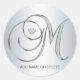 Custom Elegant Silver Monogrammed Initial Letter M Classic Round Sticker